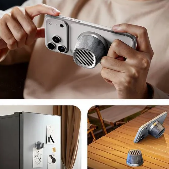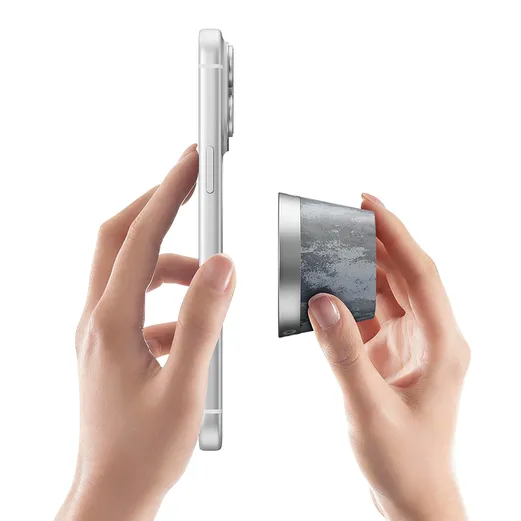 Fixação Magnética: Utiliza ímãs compatíveis com a tecnologia MagSafe da Apple para grudar na parte traseira de iPhones (do 12 em diante) ou em outros aparelhos através de capas com anéis magnéticos.
