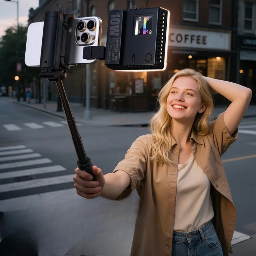 A luz de vídeo C10RGB é uma verdadeira potência de bolso, ideal para quem deseja elevar a qualidade de fotos e vídeos com praticidade. Compacta e fácil de usar, ela é montada em segundos e pode ser ajustada facilmente com apenas uma mão — perfeita para produções rápidas.