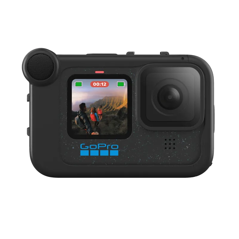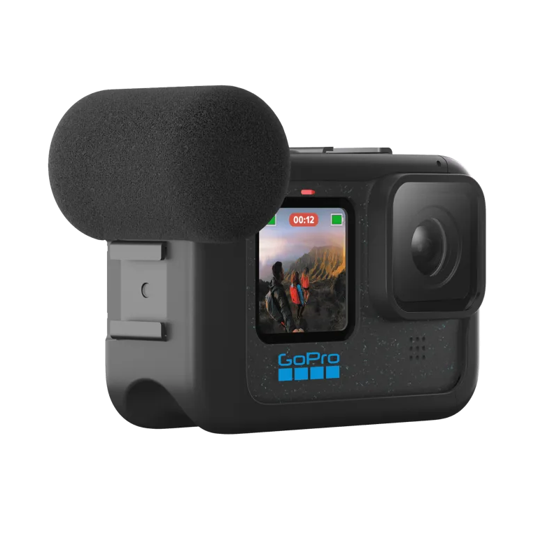 Projetado para gravar vlogs e fazer transmissões ao vivo, além de possibilitar expansão quase ilimitada, o Módulo de mídia transforma sua câmera HERO em uma central de produções. Ele conta com um microfone direcional integrado para melhor captura de voz, entrada de 3,5 mm para microfone, saída HDMI para reprodução em monitores externos, além de dois suportes cold-shoe para iluminação, telas LCD ou microfones adicionais. Nem mesmo o vento pode derrotar esse módulo, que apresenta uma estrutura robusta e resistente ao clima. A capa removível de espuma para microfone suprime rajadas de vento de até 32 km/h.