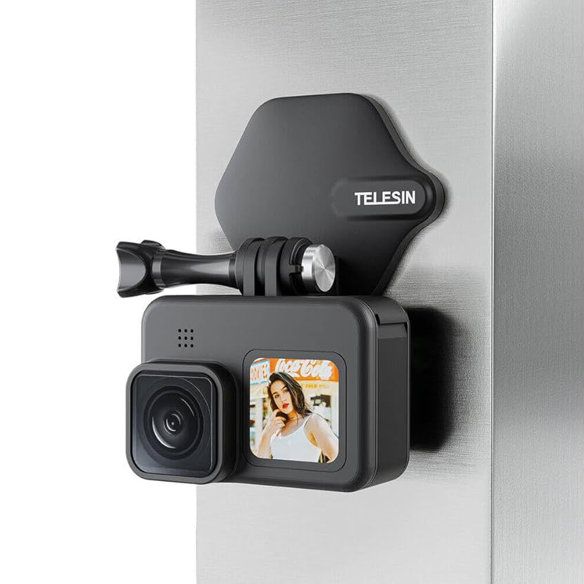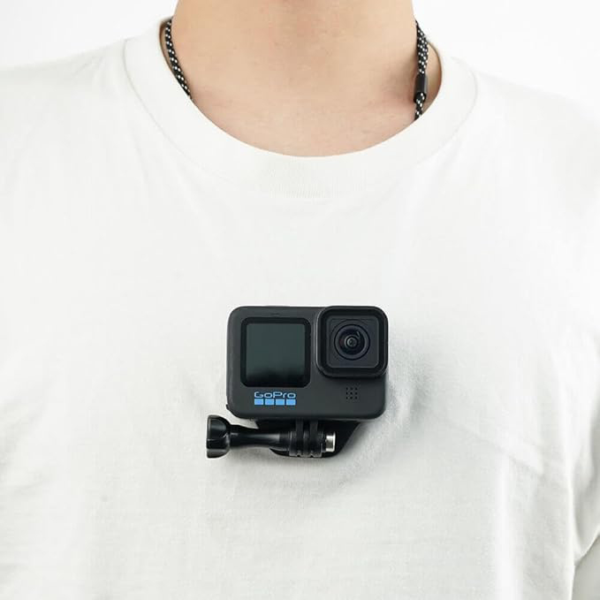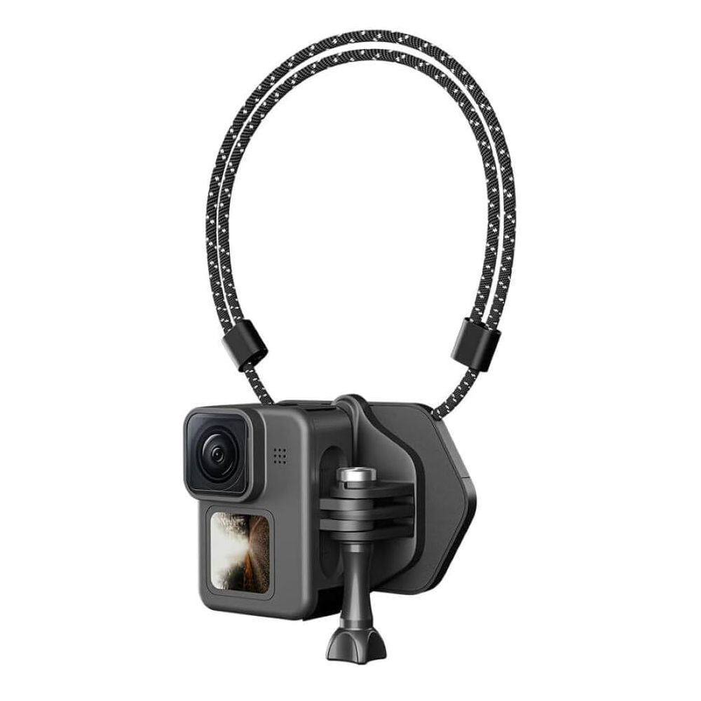 A grande placa magnética permite que você conecte rapidamente na vertical ou na horizontal, com a possibilidade de rotação de 180 graus. O cordão permite que os usuários escondam o suporte magnético sob a roupa, para que fique evidente apenas a câmera. No entanto, deve ser utilizado apenas sob peças de roupa com tecidos finos; tecidos mais grossos podem comprometer a sucção e segurança do imã.